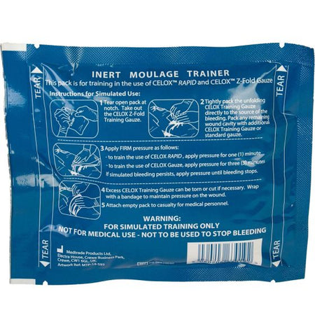 - Allows for medical trainers to thoroughly instruct personnel on the proper application of Celox™ Z-Fold Hemostatic Bandage