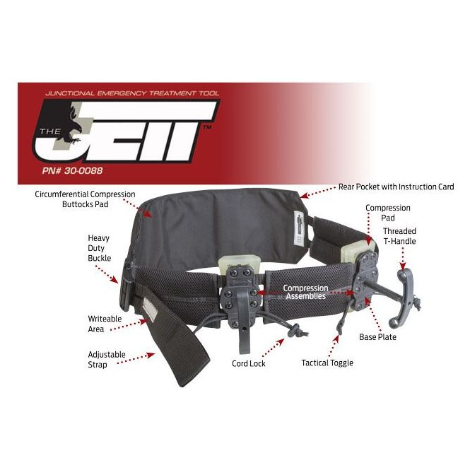 High extremity wounds in the thigh/groin region where tourniquets cannot be placed or are less effective require equipment such as the JETT® to stop the bleeding and potentially save the life of a casualty that would otherwise bleed out in minutes. Penetrating trauma, blast injuries and amputation are examples of injuries that may require treatment with this device.